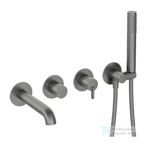 1 kép Deante SILIA falsík alatti kádtöltő csaptelep, zuhanyszettel, titanium BQS_D18P