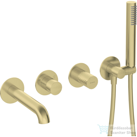 1 kép Deante SILIA HEXA falsík alatti kádtöltő csaptelep 4-lyukas, szálcsiszolt arany BHS_R18P