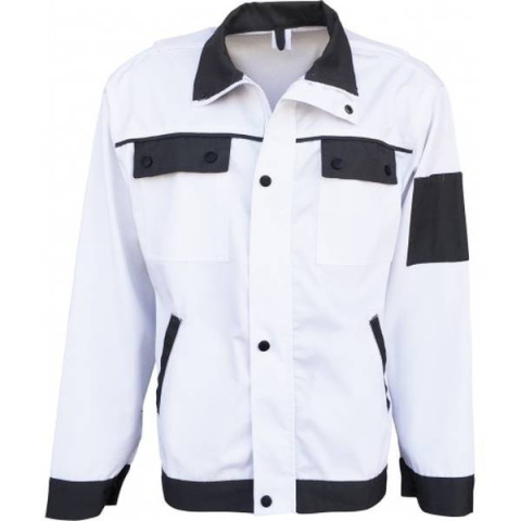 Pamut-Poliészter anyagból készült kevert szálas kopásálló munkáskabát festők részére kialakítva. A kabát két alsó rávarrt zsebbel, egy felső zsebbel és egy mobiltelefon tartó zsebbel rendelkezik. Declan Munkadzseki festők részére Pamut-Poliészter any