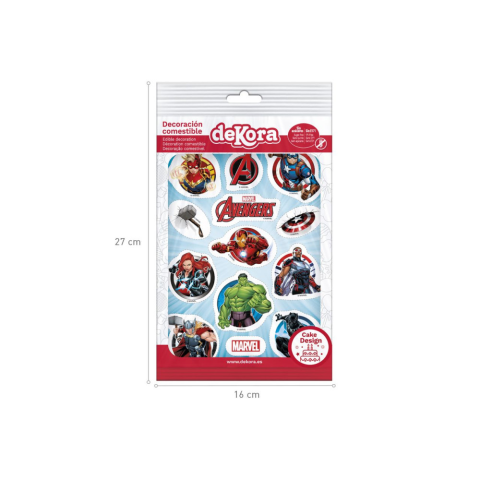 A Marvel Avengers Muffin Topper ostyalap 12 látványos, színes figurából álló ehető dekoráció, amellyel bármilyen muffin, cupcake, süti vagy torta azonnal ünnepivé és gyerek-kedvenccé válik. A toppereket kivágás után egyszerűen a kész desszert tetejére kel