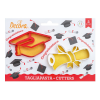 Decora kiszúró szett, diploma és talár kalap, műanyag, 2 db 2 darabos műanyag kiszúró készlet; tökéletes édes, sós, csokoládés és modellező masszából készült kekszek és formák készítéséhez. Tartalom: Diploma 9 x 5.6 xh 2.2 cm - Kalap 9 x 5.2 xh 2.2 cm