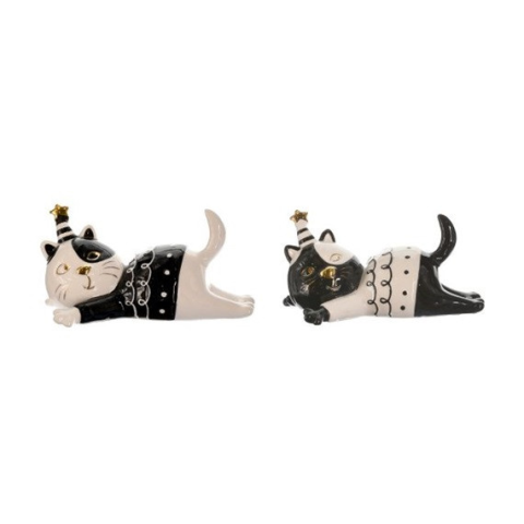 Mérete:13,2x7,9x6,5 cm Anyaga: kerámia Szín:fehér, fekete A fekvő macska figura remekül alkalmazkodik a lakás stílusához, segít a közelgő ünnepi hangulat megteremtésében. Kedvelt, elegáns karácsonyi dekoráció.