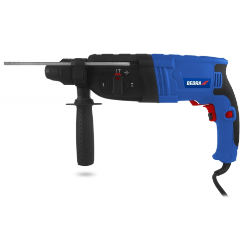 Hatásos energia: 3,2 J, fordulatszám: 1300 rpm, lökések percenként: 5100, rögzítőfej típusa: SDS+, 3 munkamód: fúrás, fúrás ütéssel, támasztás, vízszintesen elhelyezett motor, véső pozícióváltó funkció, tartozék: További 13 mm-es kulcsos fúrótokmány, kulcs, segédfogantyú, kenőanyagtartály, mélységmegállító, hordtáska