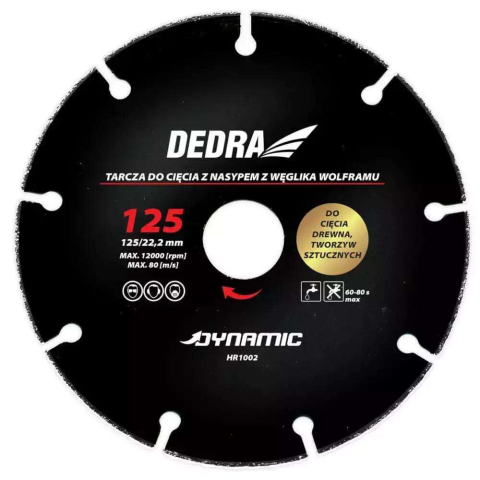 DEDRA Vágókorong fához, műanyaghoz, 125x22,2mm csiszolókorong és vágókorong 1 kép
