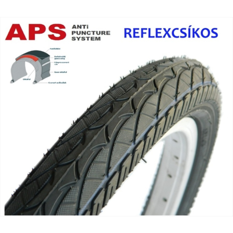 Modern forgásirányos jó vízelvezetésű városi kerékpár gumi.Defektmentes gumi reflexcsikkalDefekvédelem: 3 mm/+0,5 mmETRTO: 47-406Súly: 870 g