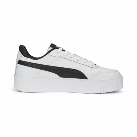 Összetétel:The Carina Street has a streetwear-inspired design in combination with a true platform profile, providing the perfect choice for everyday outfit. The full leather upper is streetwear inspired with toe overlay and basketball touch. It s accented by a perforated vamp and a synthetic leather PUMA Formstrip. The highlight of the shoe is the new cupsole tooling though with a slightly elevated platform sole with texture interest in toe and heel area. Th