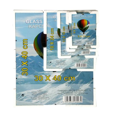 Keret nélküli üveg képtartó - kapcsos - üveg - falra akasztható - 40x50cm