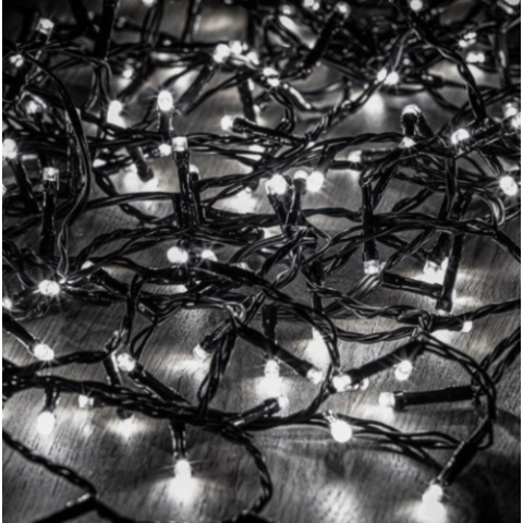 Dekortrend Basic 240 LED fényfüzér, meleg fehér, 12 méter A legegyszerűbb fényfüzér kedvező áron. 240 LED található rajta, amivel alkalmas közepes és nagyméretű karácsonyfák, valamint párkányok, kandallók díszítésére. De IP44-es szigetelésű elemtartója és kábele miatt egyre többen használják négy évszakban, kültéren is. Hideg fehér fénye kristálytiszta színű, elegáns hangulatú. Zöld kábele fenyőfán alig látszódik, de bármilyen sötét háttére