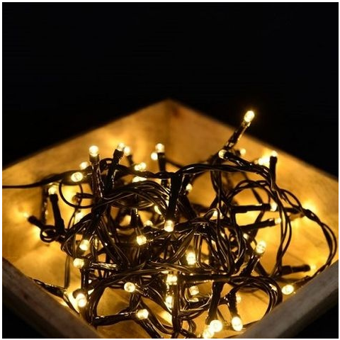 Kedvező árú fényfüzér, 230 V-ról üzemeltethető adapterrel, minimális fogyasztással.