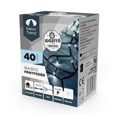Dekortrend Basic fényfüzér 40 LED hideg fehér, timer funkció, elemes KDT 042