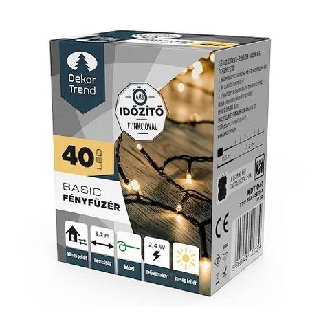 Dekortrend Basic fényfüzér 40 LED meleg fehér, timer funkció, elemes KDT 041