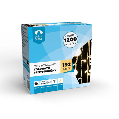Dekortrend Crystalline toldható fényfüggöny átlátszó kábellel meleg fehér Meseszép fényfüggöny átlátszó kábellel korlátok, falak, oszlopok dekorálására. A toldható rendszer lehetővé teszi, hogy akár 1200 LED-ig egybe kapcsoljunk több Crystalline termék