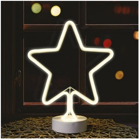 Klasszikus neonfény hatású, modern LED-es ablakdísz többféle formával (csillag, fenyőfa, angyalka). Látványos dekorációja lehet asztalnak, ablakoknak, sőt bároknak, kávézóknak, közösségi tereknek.