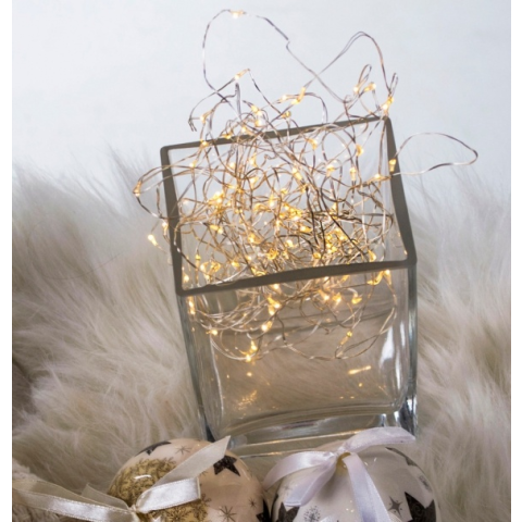A tündérfény dekorfüzér légiesen könnyű és varázslatosan szép. Apró, rizsszem méretű LED-ekkel világít. Elemről működik, ennél fogva bárhova felfüggeszthető: fenyőfára, ablakba, könyvespolcra, asztal közepére, üvegvázára, fenyőfára.