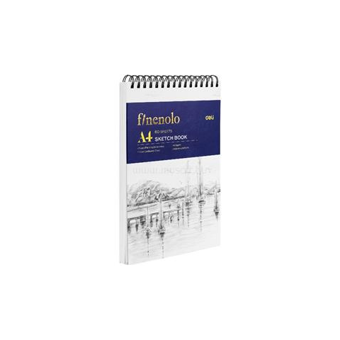 1 kép DELI FINENOLO A4, álló, 160 g/m2, rövid oldalán spirálozott, fehér rajzpapírfüzet (DEC276)