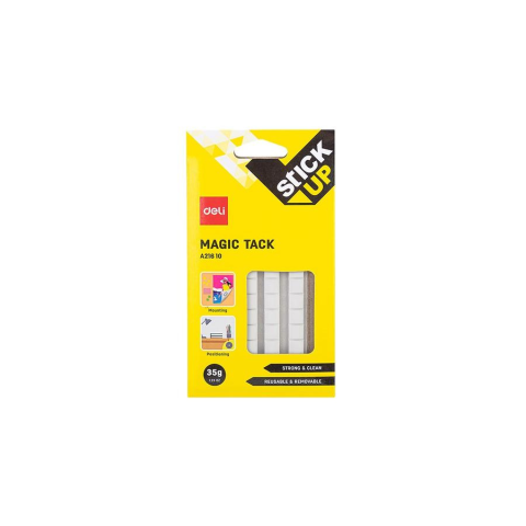 Iskolai, irodai és otthoni felhasználásra egyaránt alkalmas. Gyorsan, tisztán rögzít, könnyen eltábolítható, újra felhasználható, erős tapadás, kézzel téphető. 35g-os fehér árnyalatú.