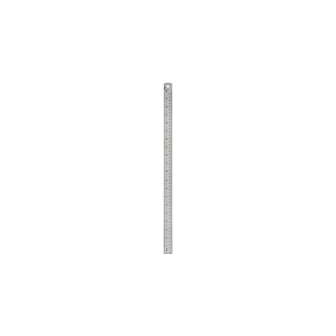 Jól olvasható skála, akasztólyukkal ellátott fém vonalzó. Inch és mm skála. Műanyag tartóban.