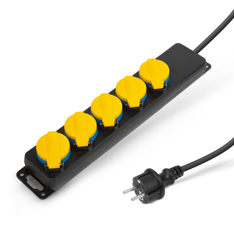 delight 20223E 220V Kültéri elosztó 5 aljzatos 1.5m - Fekete/Sárga (20223E) hosszabbító, elosztó 1 kép