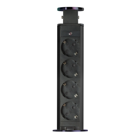 Süllyeszthető elosztó irodai és otthoni felhasználásra, fém házzal, 4 db gyermekvédelemmel ellátott aljzattal. Asztala, bútora legyen mindig elegáns és rendezett, mégis funkcionális. A rejtett elosztó kiváló megoldás lehet ha már például kész konyhával rendelkezik, de nincs elegendő konnektor a kívánt helyen. Ilyenkor falvésés és villamos hálózat bővítés nélkül, remek alternatíva lehet egy rejtett elosztó. Egy mozdulat és máris rendelkezésre áll 4 szaba