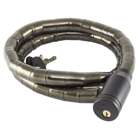 Kerékpár lakat (kábelzár). A bevont acélkábel ellenállóbb a vágó támadásokkal szemben. Minőségi zárszerkezet, 2 db kulccsal.