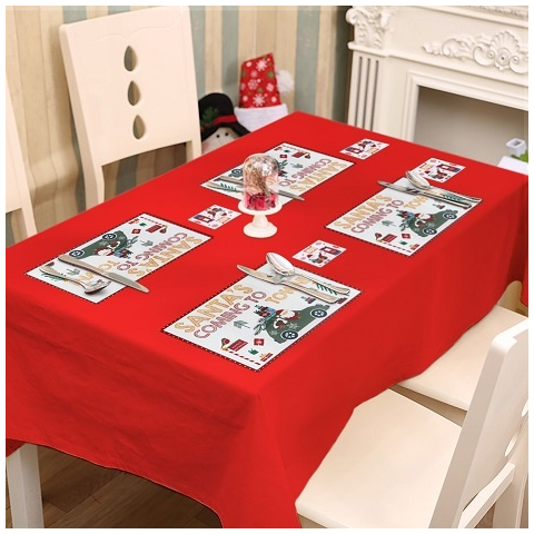 Karácsonyi asztali tányér- és poháralátét többféle mintával. A szett 4 tányér és 4 kisebb méretű, ünnepi témájú poháralátétet tartalmaz.