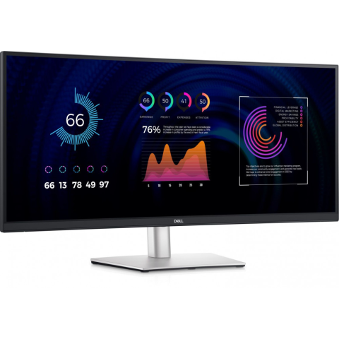 DELL P Series P3424WE. Képernyő méret: 86,7 cm (34.1"), Képernyőfelbontás: 3440 x 1440 pixelek, HD típusa: 4K Ultra HD, Kijelző technológiája: LCD, Válaszidő: 8 ms, Alap képméretarány: 21:9, Vízszintes látószög: 178°, Függőleges látószög: 178°. Beépített USB-elosztó, USB-elosztó verziója: 3.2 Gen 1 (3.1 Gen 1). VESA szerelés, Magasságigazítás. Termék színe: Fekete