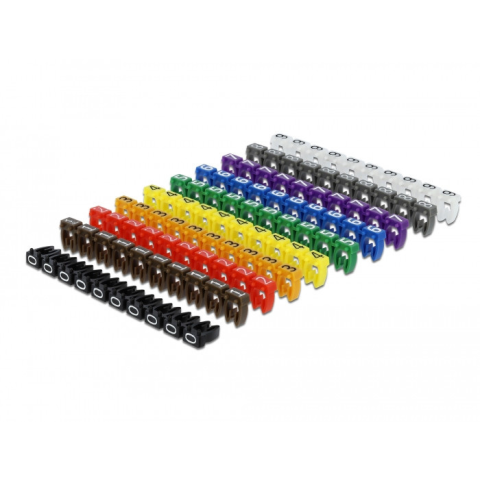 1 kép DELOCK 100 db. különböző színű kábel jelölő csat 0-9 számjelöléssel