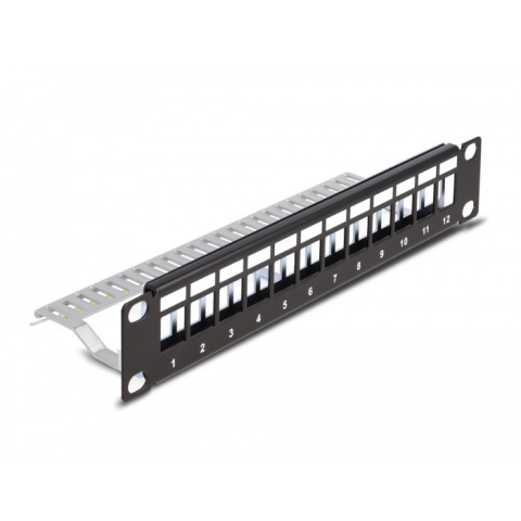 1 kép DELOCK 10 Keystone patch panel 12 porttal és tehermentesítővel 1U fekete