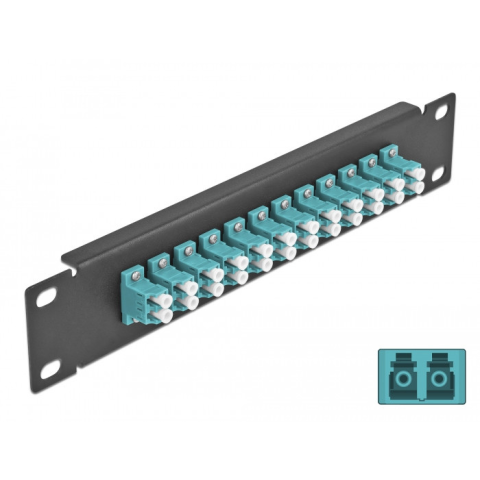 1 kép DELOCK 10 üvegszálas patch panel 12 portos LC Duplex vízkék 1U fekete