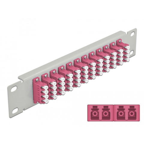 1 kép DELOCK 10 üvegszálas patch panel 12 portos LC Quad ibolya 1U szürke