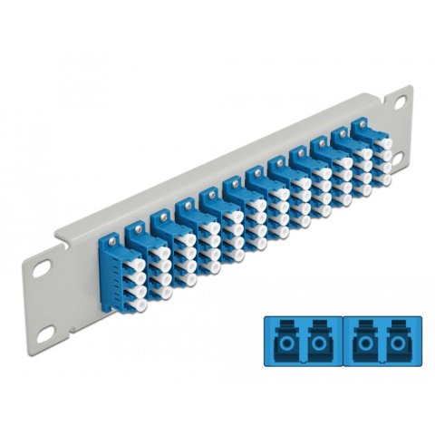1 kép DELOCK 10 üvegszálas patch panel 12 portos LC Quad kék 1U szürke