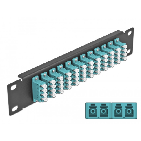 1 kép DELOCK 10 üvegszálas patch panel 12 portos LC Quad vízkék 1U fekete