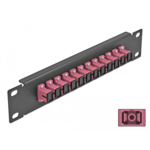 1 kép DELOCK 10 üvegszálas patch panel 12 portos SC Simplex ibolya 1U fekete