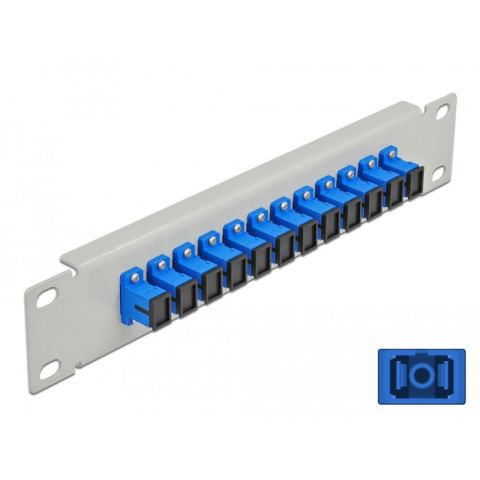 1 kép DELOCK 10 üvegszálas patch panel 12 portos SC Simplex kék 1U szürke