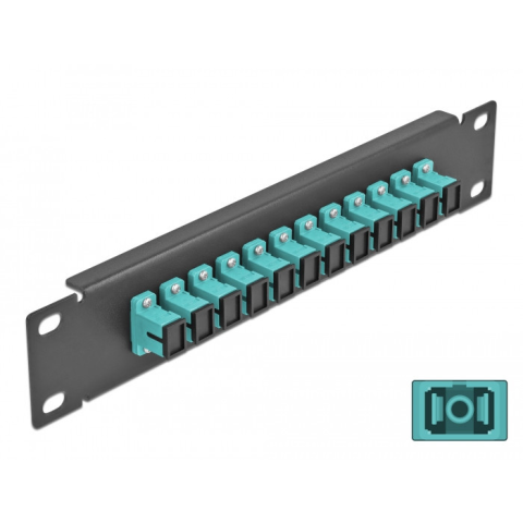 1 kép DELOCK 10 üvegszálas patch panel 12 portos SC Simplex vízkék 1U fekete