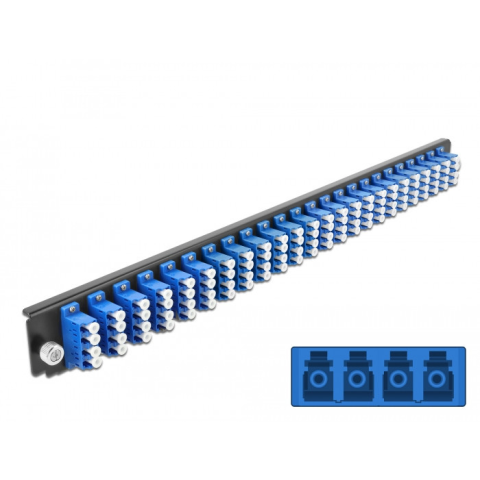 Ez a Delock első panel beépíthető egy Delock 19 kötő dobozba. Műszaki adatok Csatlakozó: 24 x LC Quad hüvely > 24 x LC Quad hüvely Szín: kék 96 db. OS2, egyetlen módozatú szálhoz Cirkónia kerámiából készült kábelátvezető, védősapká