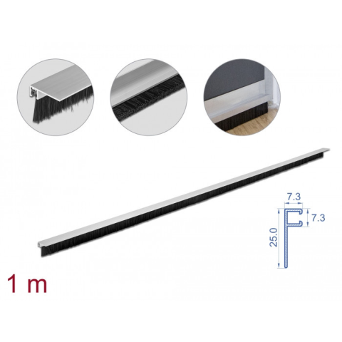 1 kép DELOCK 20 mm hosszú, hajlított kefeszalag 1 m hosszú alumínium foglalattal
