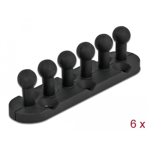 1 kép DELOCK 6 db.-os fekete öntapadós / csavarozható kábeltartó 5 átvezetővel