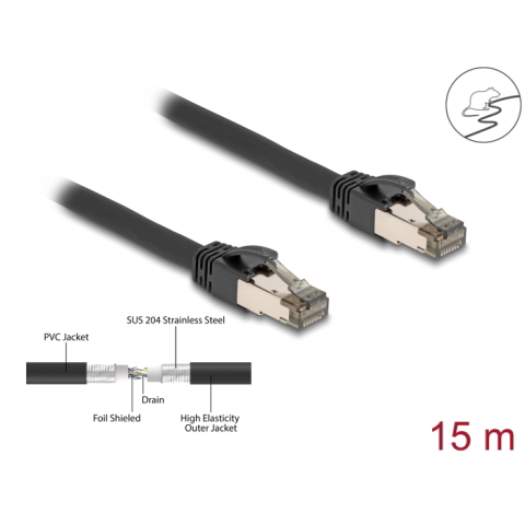 1 kép DELOCK 80245 U/FTP Cat6a RJ45 Flexibilis Patch kábel 15m - Fekete (80245)