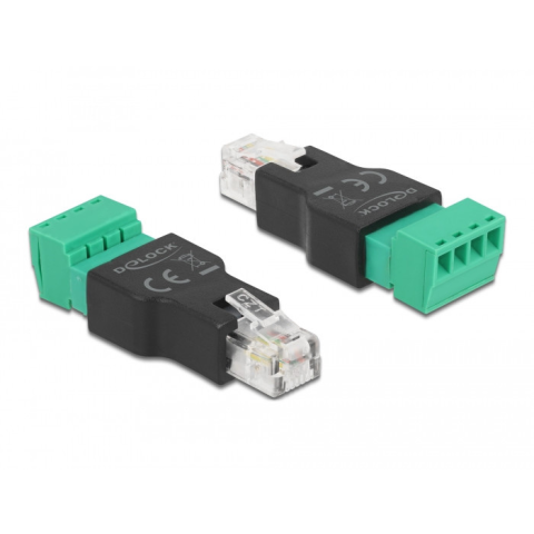 1 kép DELOCK adapter RJ11/14 apa csatlakozó a 4 tűs 2-részes terminálblokkhoz
