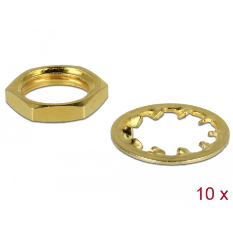 1 kép DELOCK Anyacsavar és reteszelő gyűrű SMA és RP-SMA anya csatlakozóaljzathoz, 10 darab