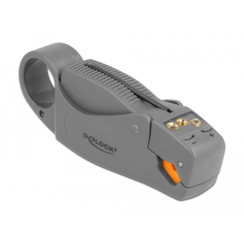 Ez a Delock csupaszító eszköz koaxiális kábelek csupaszítására szolgál. Könnyű használat A szerszám belsejében lévő három pengének köszönhetően egy lépésben lehúzható a kerek kábelek (RG-6, RG-59, RG-58) külső burkolata, árnyékolása és belső vezető sz
