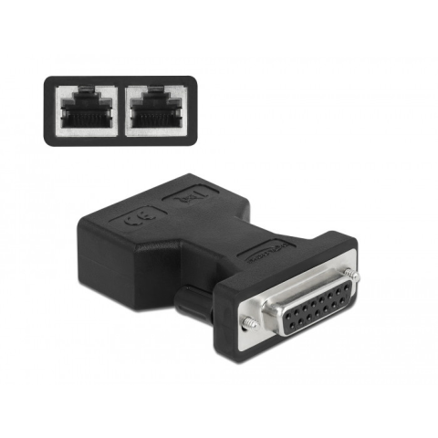 1 kép DELOCK D-Sub 15 tűs anya 2 db. RJ45 anya adapter