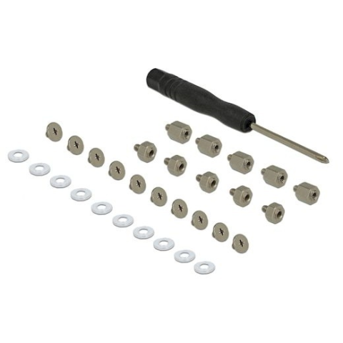 Ez a Delock szerszámkészlet használható különbözo M.2 SSD-k és modulok megfelelo foglalatokhoz rögzítésére. Továbbá, a készlet egyes darabjai használhatók elveszett kiegészítok helyettesítésére. Muszaki adatok Kis alátét: M2 x 4,