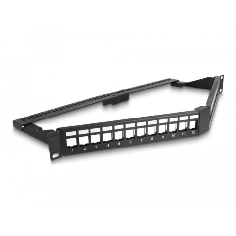 1 kép DELOCK Delock 19 Keystone Patch Panel 24 port húzásmentesítővel 1U ferde fekete