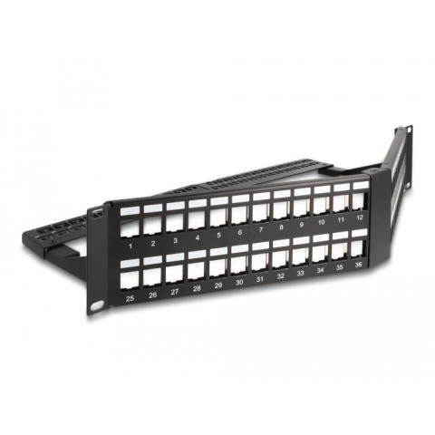 1 kép DELOCK Delock 19 Keystone Patch Panel 48 port húzásmentesítővel, 2U ferde fekete