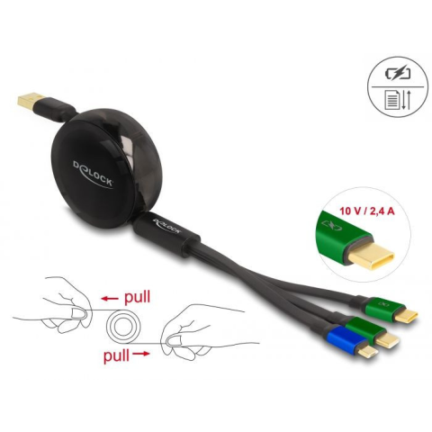 1 kép DELOCK DeLock USB-A to USB-C, microUSB male/male cable Black