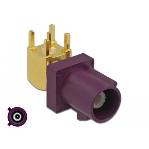 Ez a Delock apa konnektor alkalmas rádió frekvencia technológiájú eszközök összekapcsolására. Műszaki adatok Csatlakozó: 1 x FAKRA D-dugó 90 PCB FAKRA D: RAL 4004 Claret violet (vérvörös lila) Pin: aranyozott foszfor-bronz Szigetelő: PTF
