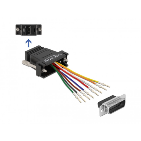 1 kép DELOCK Fekete D-Sub 15-tűs apa RJ45 anya összekötő adapter