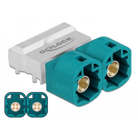 Ez a Delock-adapter alkalmas az elektronikus technológiai elemek és az elektronika összekapcsolására a járművekben. Műszaki adatok Csatlakozó: 2 x HSD Z-dugó 90 PCB HSD Z: RAL 5021 vízkék Pin: aranyozott foszfor-bronz Szigetelő: LCP B